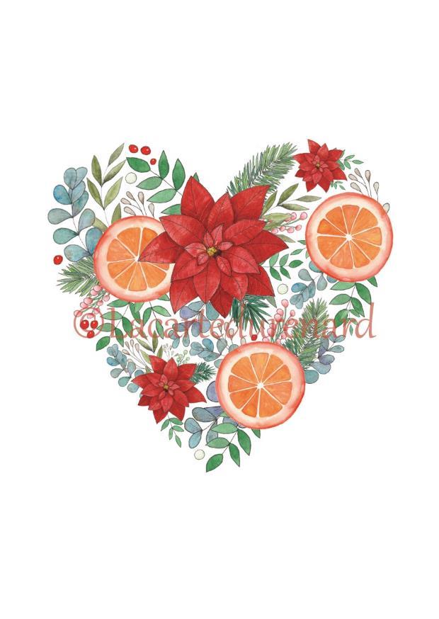 Carte coeur Noël est une carte postale à envoyer ou pour (se) faire plaisir en décoration murale. Le format standard (14.8 x 10.5cm) vous permettra de trouver facilement un cadre en magasin de bricolage ou de décoration.