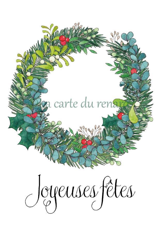 Carte Joyeuses fêtes est une carte postale / décoration murale illustrée à partir d’une aquarelle. Toutes les aquarelles sont réalisées par Marion, la créatrice de la carte du Renard. Les motifs sont réalisés à l’aquarelle puis numérisés et imprimés sur un papier 300g/m², légèrement texturé, verso inscriptible.