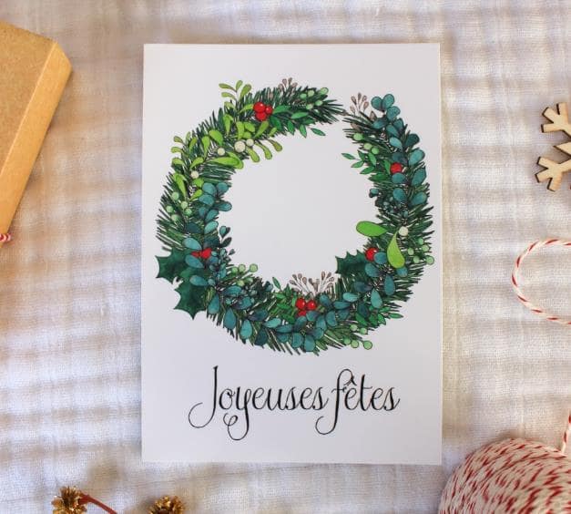 Carte Joyeuses fêtes est une carte postale à envoyer ou pour (se) faire plaisir en décoration murale. Le format standard (14.8 x 10.5cm) vous permettra de trouver facilement un cadre en magasin de bricolage ou de décoration.