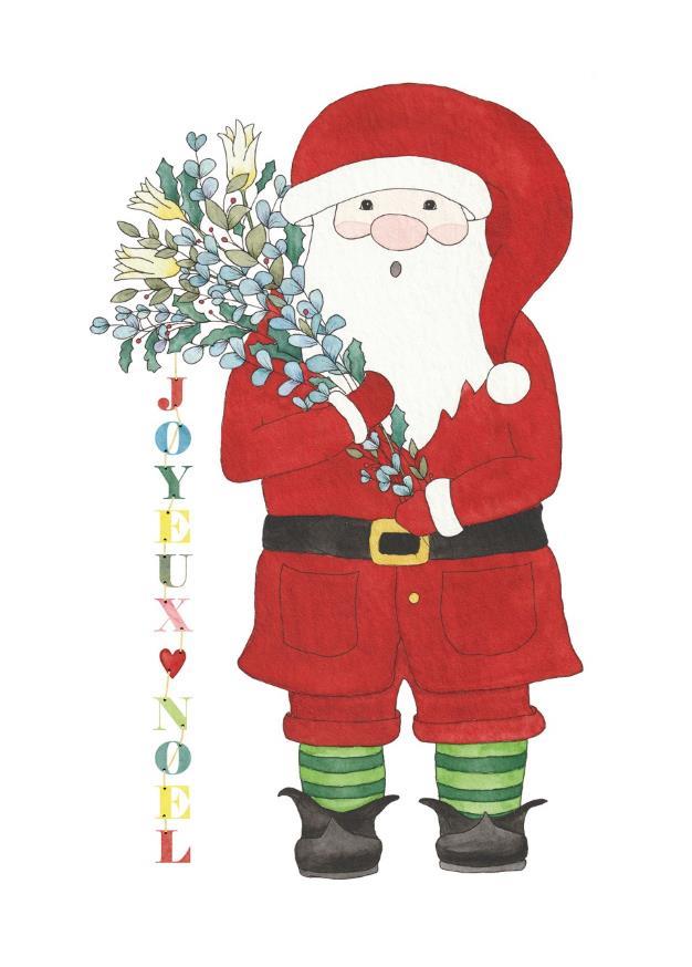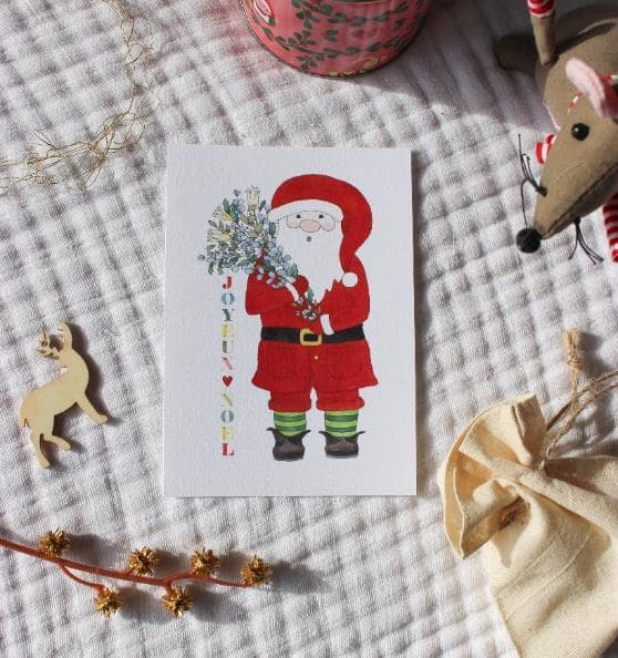 Carte Père Noël est une carte postale / décoration murale illustrée à partir d’une aquarelle. Toutes les aquarelles sont réalisées par Marion, la créatrice de la carte du Renard. Les motifs sont réalisés à l’aquarelle puis numérisés et imprimés sur un papier 300g/m², légèrement texturé, verso inscriptible.