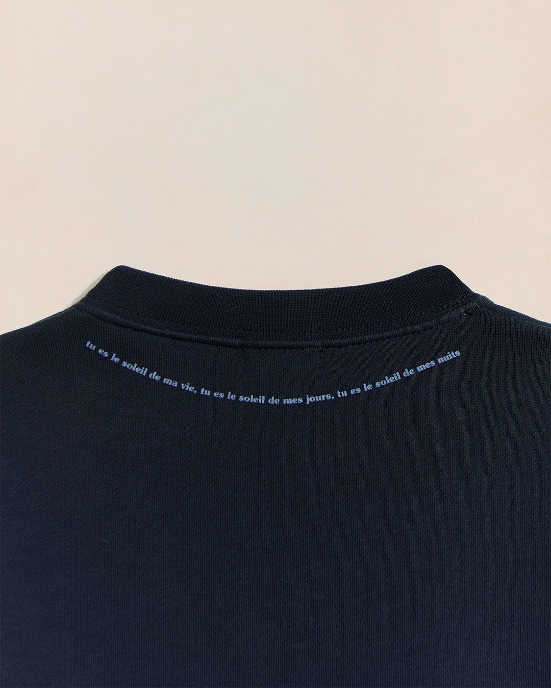 Le message inspirant, “Tu es le soleil de ma vie, tu es le soleil de mes jours, tu es le soleil de mes nuits.” est discrètement imprimé sous le col dans le dos.