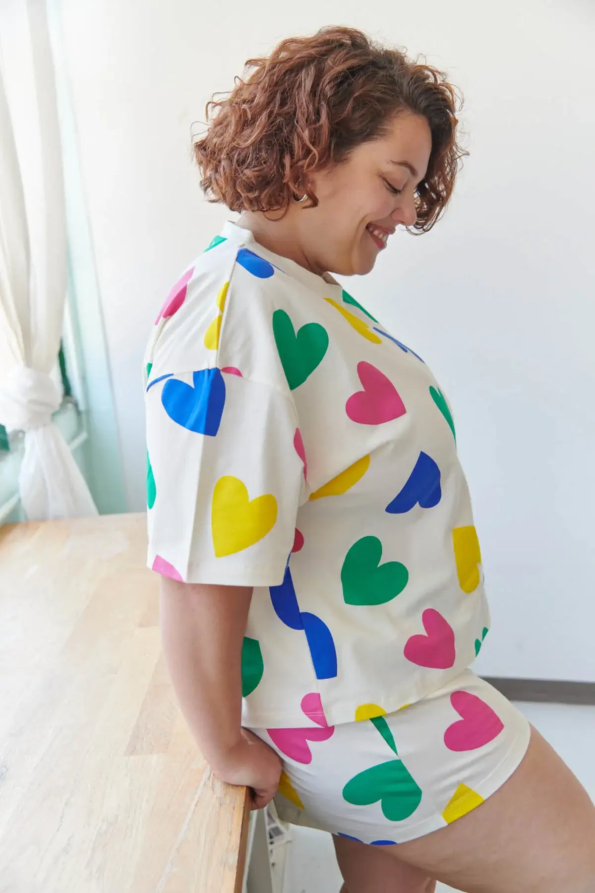Pyjama Big Love Beige avec un imprimé qui donne envie de danser toutes la nuit.