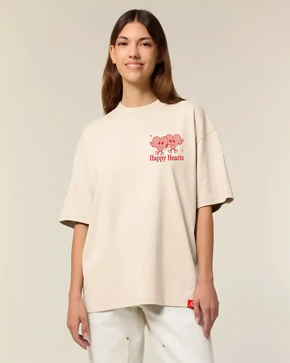 Le t-shirt Oversize Happy Heart est conçu pour offrir un maximum de confort et de style. Il s’adapte parfaitement au quotidien. Se prêtant aussi bien aux sorties décontractées qu’aux moments de détente à la maison. Sa conception unisexe en fait une pièce versatile, idéale pour tous ceux qui cherchent à ajouter une touche de fraîcheur et d’originalité à leur garde-robe.