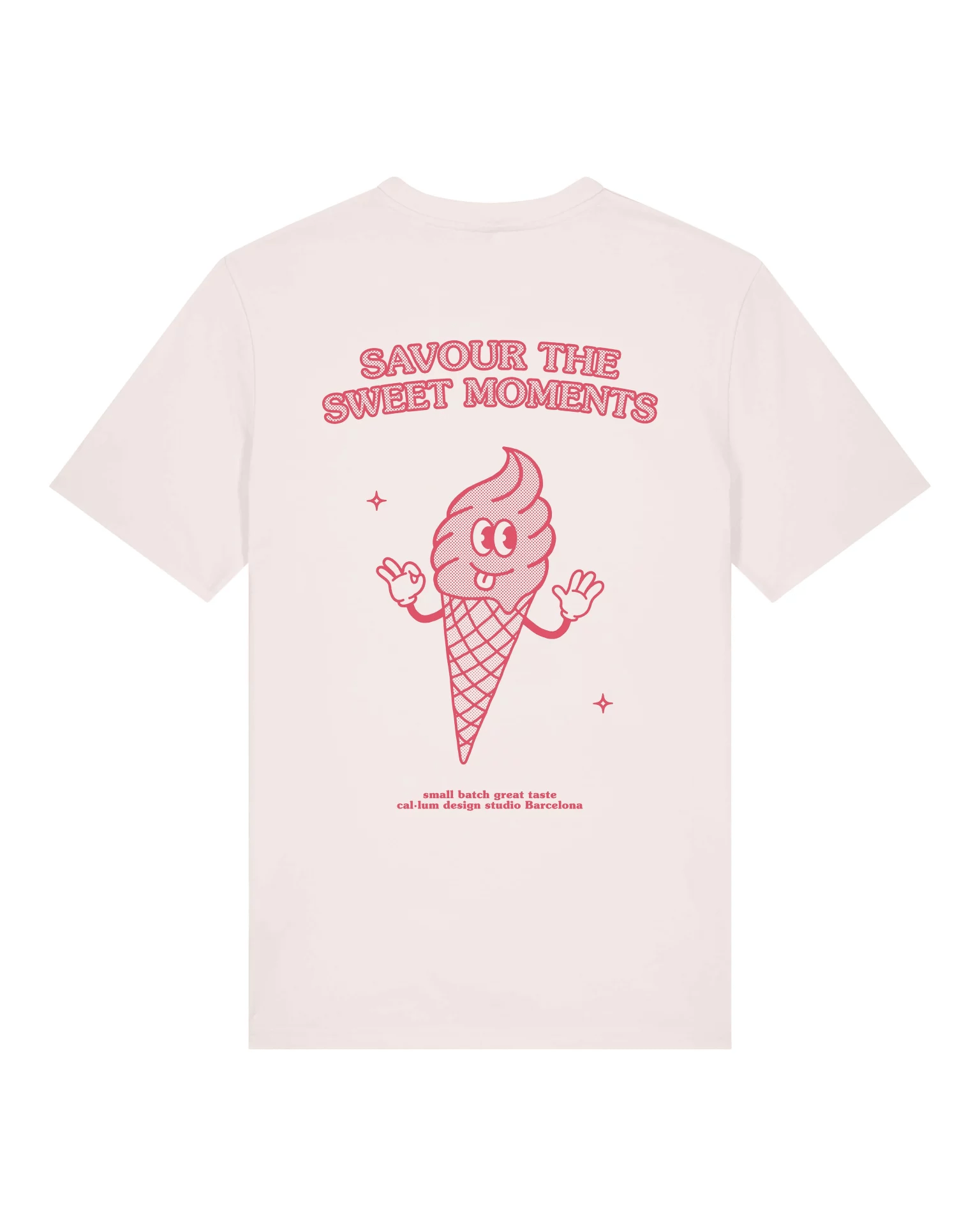 Découvrez le t-shirt Sweet Moments de Cal.Lum, un modèle unisexe qui célèbre l’amour des glaces avec son style impeccable et décontracté. Confectionné dans un tissu blanc vintage, ce t-shirt arbore un imprimé captivant en couleur rose sur le recto et un autre au verso. Cela rend chaque pièce unique et vibrante. Parfait pour les journées baignées de soleil et les nuits éclairées par les étoiles. Ce t-shirt est une véritable invitation à profiter pleinement de chaque moment.